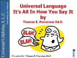 In this humorous and provocative training, Dr. Thomas Pomeranz discusses the importance of using Universal Language. Tom heightens the participant’s sensitivities to the impact of language in promoting respectful relationships. The evolution of slang references that devalue people is discussed. Numerous examples of insensitive language are presented with the Universal Language alternative. Tom emphasizes that the words and language that we use are a reflection of our belief system and it is upon these beliefs that we base our actions. Thus Tom helps the participants gain a new insight into their inner beliefs about people with disabilities by increasing their awareness of the words they use. Throughout the session, Tom provides attendees with strategies to master Universal Language as well as sensitively supporting others who struggle in using words of respect. It is the outcome of this session “that the words and language we use in talking about our friends - the words and language they use in talking about us”, will serve as the standard in how we speak to and about people with disabilities – “It’s all in how you say it.” |